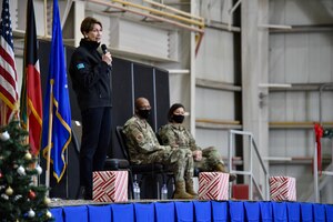 Dec. 23, 2020 USAF Leadership visits ASAB Secretary of the Air Force Barbara Barrett, U.S. Air Force Chief of Staff Gen. Charles Q. Brown, Jr., and Chief Master Sergeant of the Air Force JoAnne S. Bass spoke with Airmen from Ali al Salem Air Base and gained insight about ASAB's mission as the tactical airlift hub and gateway for delivering