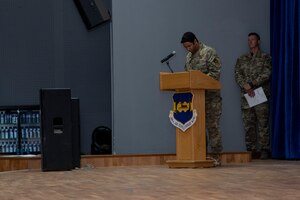 April 19, 2021 82d EASOS AoC U.S. Air Force Maj. Burley J. Malbrough assumes command of the 82nd Expeditionary Air Support Operations Squadron during an assumption of command ceremony at Ali Al Salem Air Base, Kuwait, April 18, 2021. Malbrough will lead the 82nd EASOS which provides tactical command and control of air assets