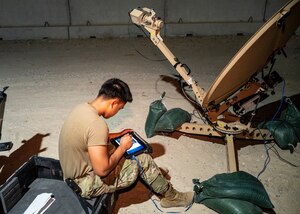 Sept. 3, 2023 46th EATKS Participates in Operation Agile Spartan Four U.S. Air Force MQ-9 aircraft assigned to the 46th Expeditionary Attack Squadron, prepare for an Operation Agile Spartan mission departing from Ali Al Salem Air Base, Kuwait, August 21, 2023. The four MQ-9 aircraft conducted the 386 AEW's first full air tasking order (ATO) cycle using satellite