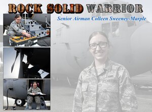 Nov. 2, 2016 Rock Solid Warrior: Senior Airman Colleen Sweeney-Marple I’m Senior Airman Colleen Sweeney-Marple, a 386th Expeditionary Aircraft Maintenance Squadron assistant dedicated crew chief. I am deployed from the 755th Aircraft Maintenance Squadron at Davis-Monthan Air Force Base, Arizona. I joined the Air Force to serve my country. As an assistant dedicated