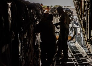 June 21, 2017 386 AEW deliver critical supplies to the frontlines SOUTHWEST ASIA -- “We aim for first pass success. One pass, one drop,” said Maj. Josh Linden, the chief of tactics with the 386th Expeditionary Operations Support Squadron, as he described the 386th Air Expeditionary Wing’s airdrop mission. The 386th AEW conducted several combat airdrop missions