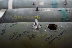 Oct. 22, 2019 386 EMXS Munitions Airmen demonstrate bomb building Messages written by Airmen from the 386th Expeditionary Maintenance Squadron are shown on a GBU-38 at Ali Al Salem Air Base, Kuwait, Oct. 16, 2019. Munitions Systems specialists assemble and process munitions. Working with a high level of attention to detail and extreme care, these experts handle,