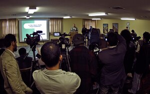 Lt. Gen. Gary L. North, the Combined Forces Air Component commander for forces in Southwest Asia, met with Afghan media last month to discuss airpower missions and contributions to the safety and security of the Afghan people. Reporters from more than 20 television, radio and news print