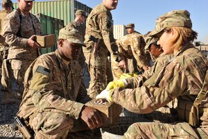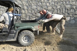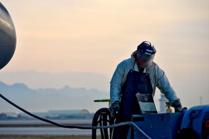 U.S. Air Force Tech. Sgt. Alex Introini, 455th Expeditionary Maintenance Squadron aircraft machinist and welder, and Senior Airman Allan Rosso, 455 EMXS aircraft metals technologist, manufacture a forward fuel pylon attach fitting wrench kit at Bagram Airfield, Afghanistan, Feb. 20, 2014.