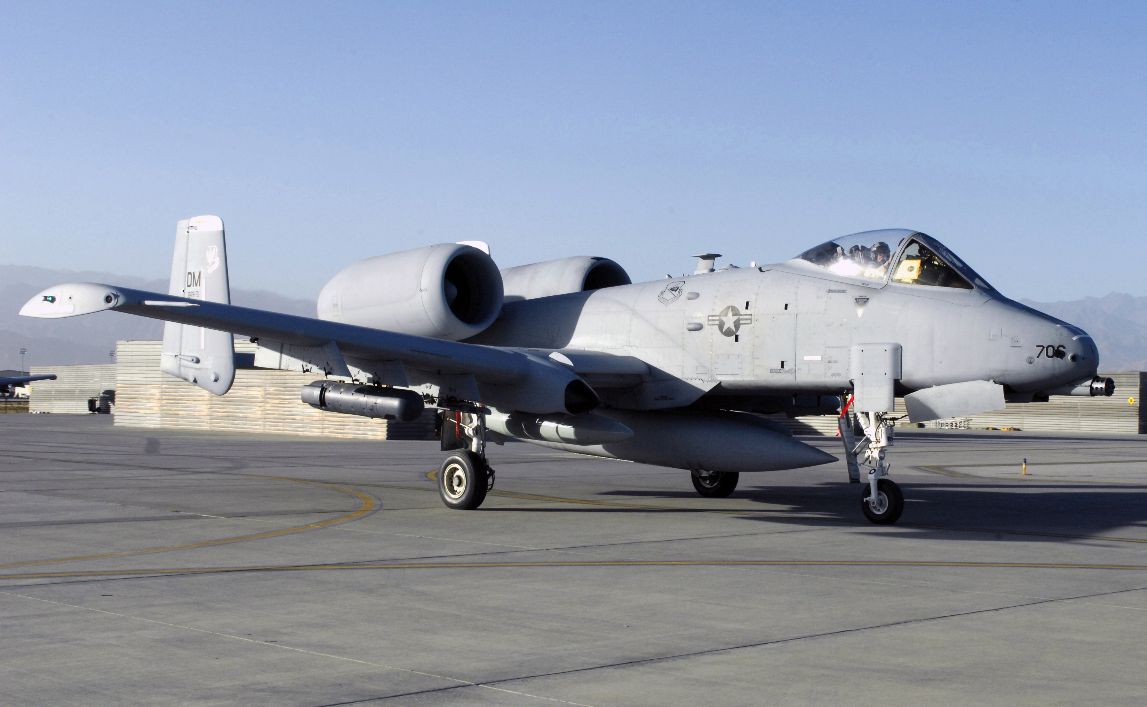 A U.S. Air Force A-10 Thunderbolt II from Davis-Monthan Air Force Base’s 354th Fighter Squadron taxis to its parking spot at Bagram Air Field, Afghanistan, Oct. 3, 2012. Affectionately called the ‘Warthog’, the A-10 is a specialized ground-attack aircraft which provides close air support to ground forces operating in Afghanistan. (U.S. Air Force Photo/Capt. Raymond Geoffroy)